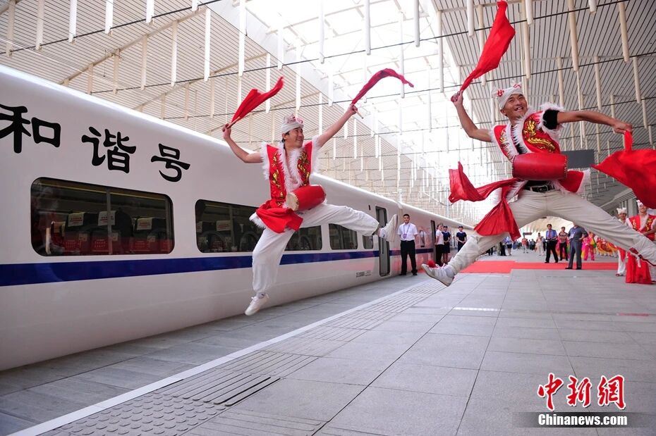 图为2012年7月1日西安至延安动车组列车首发。唐振江 摄